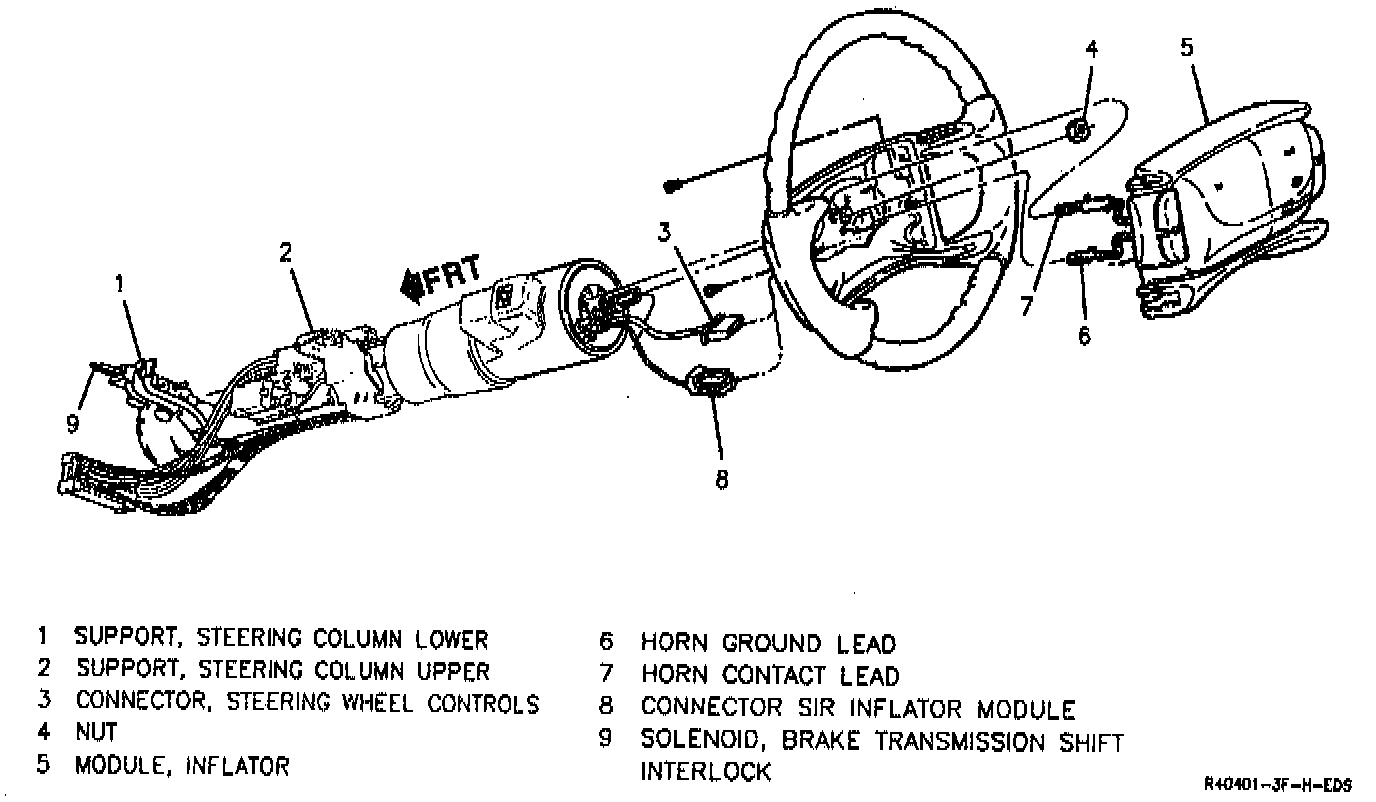 and column primary components include a steering wheel, inflator module, steering wheel control switches,