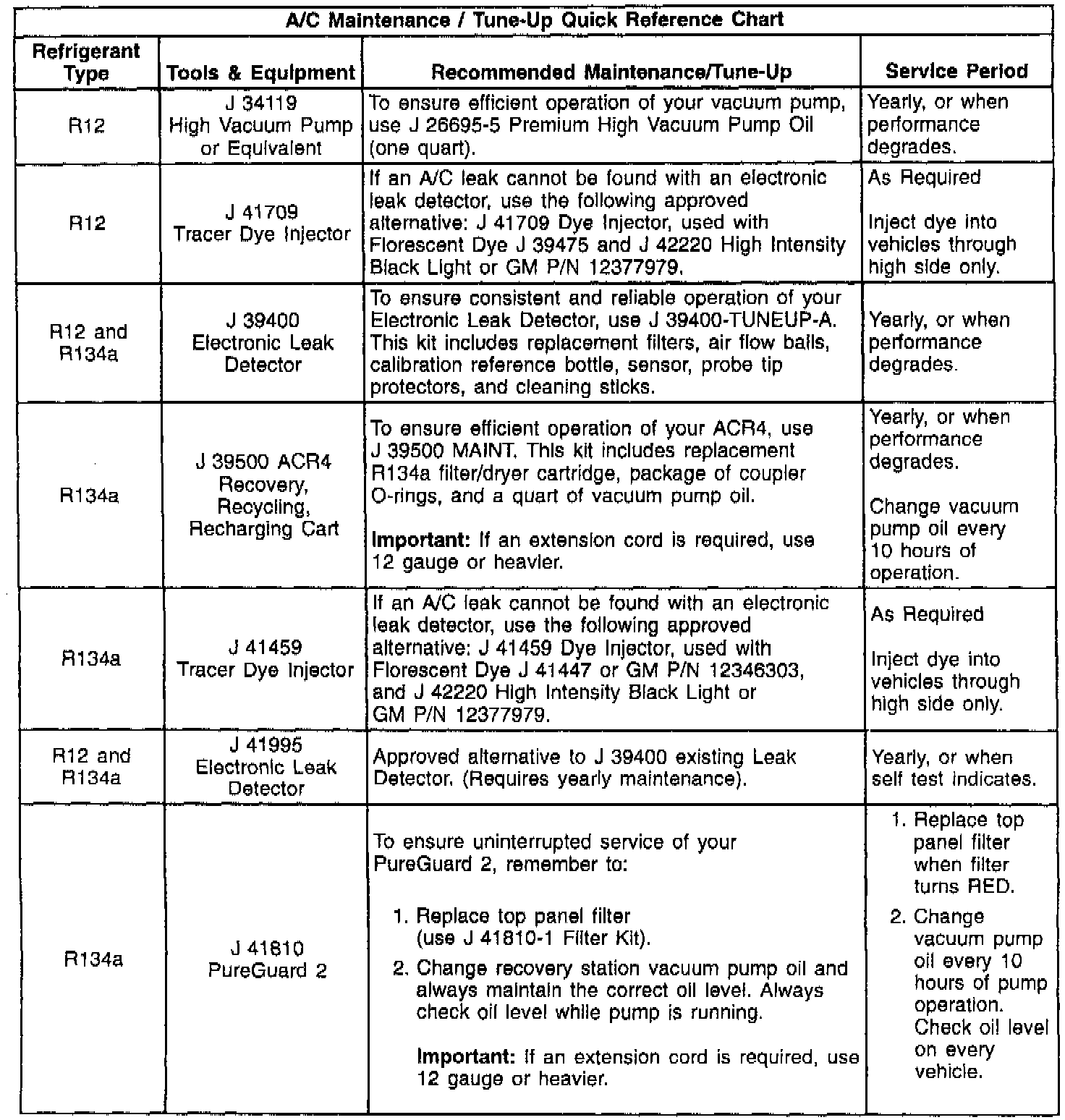 A/C Tool and Equipment Maintenance; Tune-Up Spring Reminder
