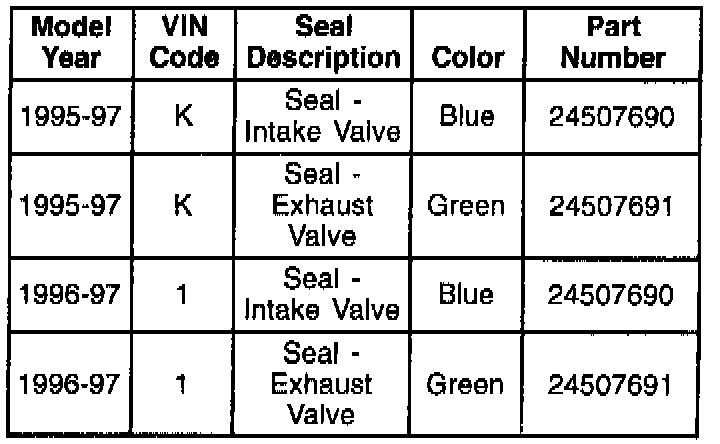 Powertrain Engineering has developed improved valve stem seals for 3800 Series II engines. The improved valve stem seals supersede original equipment type seals and therefore are the only replacement seals available from SPO. Valve seal installation tool J 42863 (blue color) has been developed to properly install the improved seals. Tool J 41512 (black color) will not install the new style seals properly and should be discarded. Tool J 42863 is an essential tool and will automatically be shipped to appropriate dealers/retailers via Kent-Moore company beginning June 19, 1997.