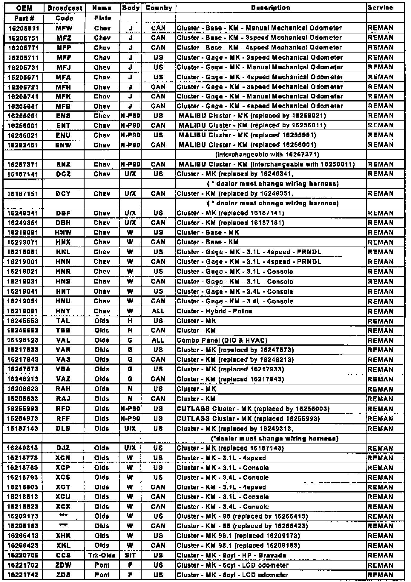 These instrument clusters can be obtained from an authorized AC Delco Service Center.