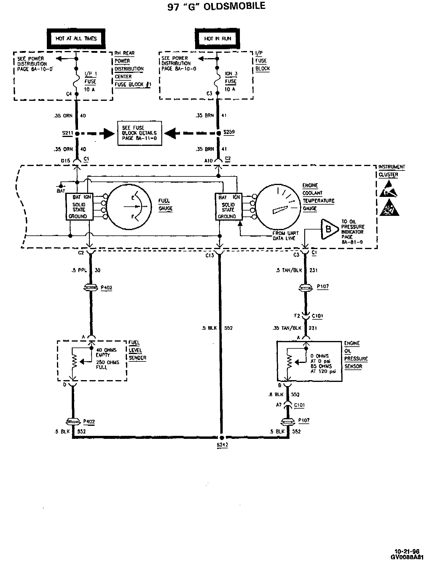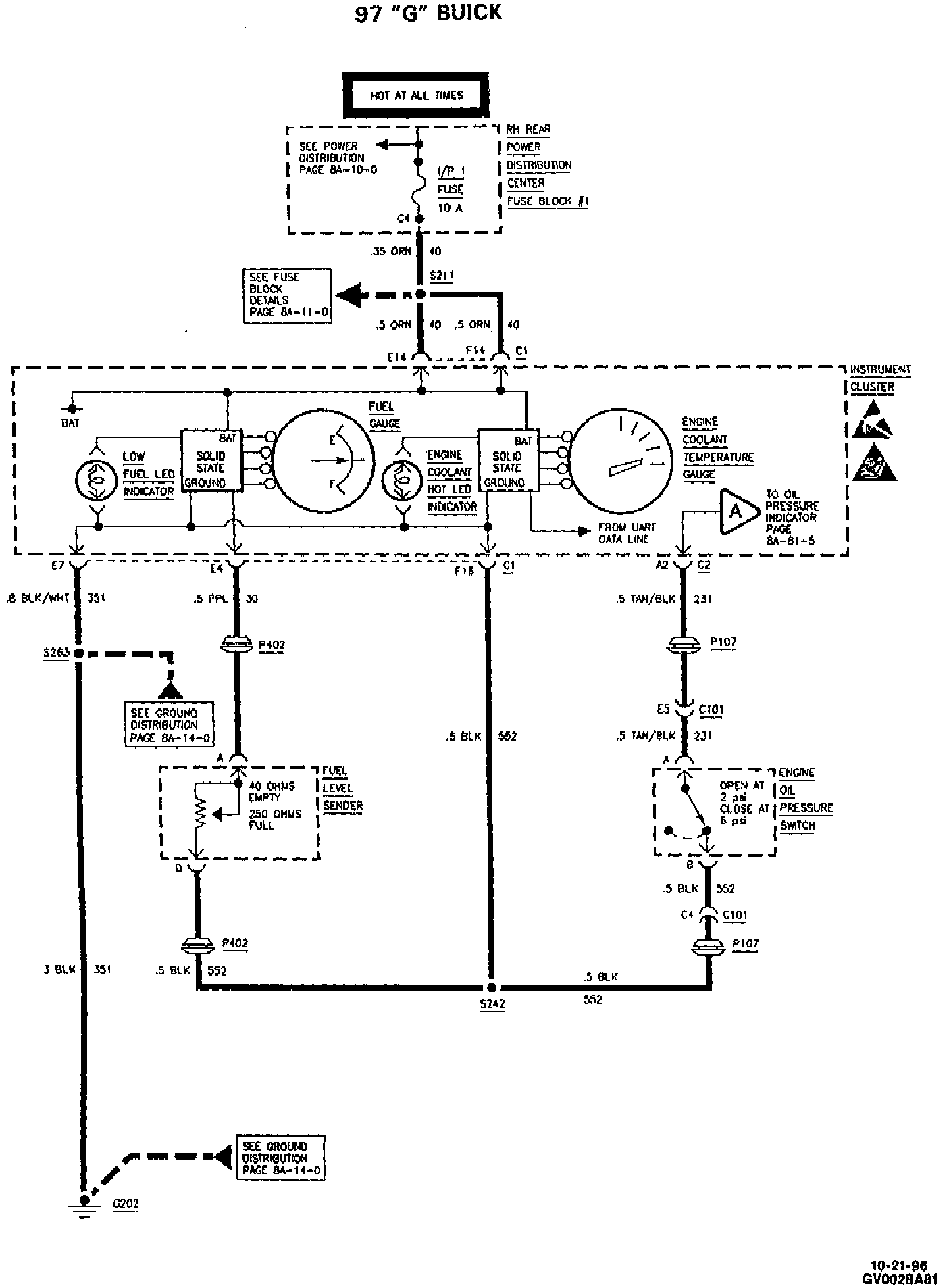 ^ Page 8A-81-42 of the 1997 G-Car Service Manual should be changed as follows to reflect the correct fuel level resistance (40 ohms to 250 ohms):