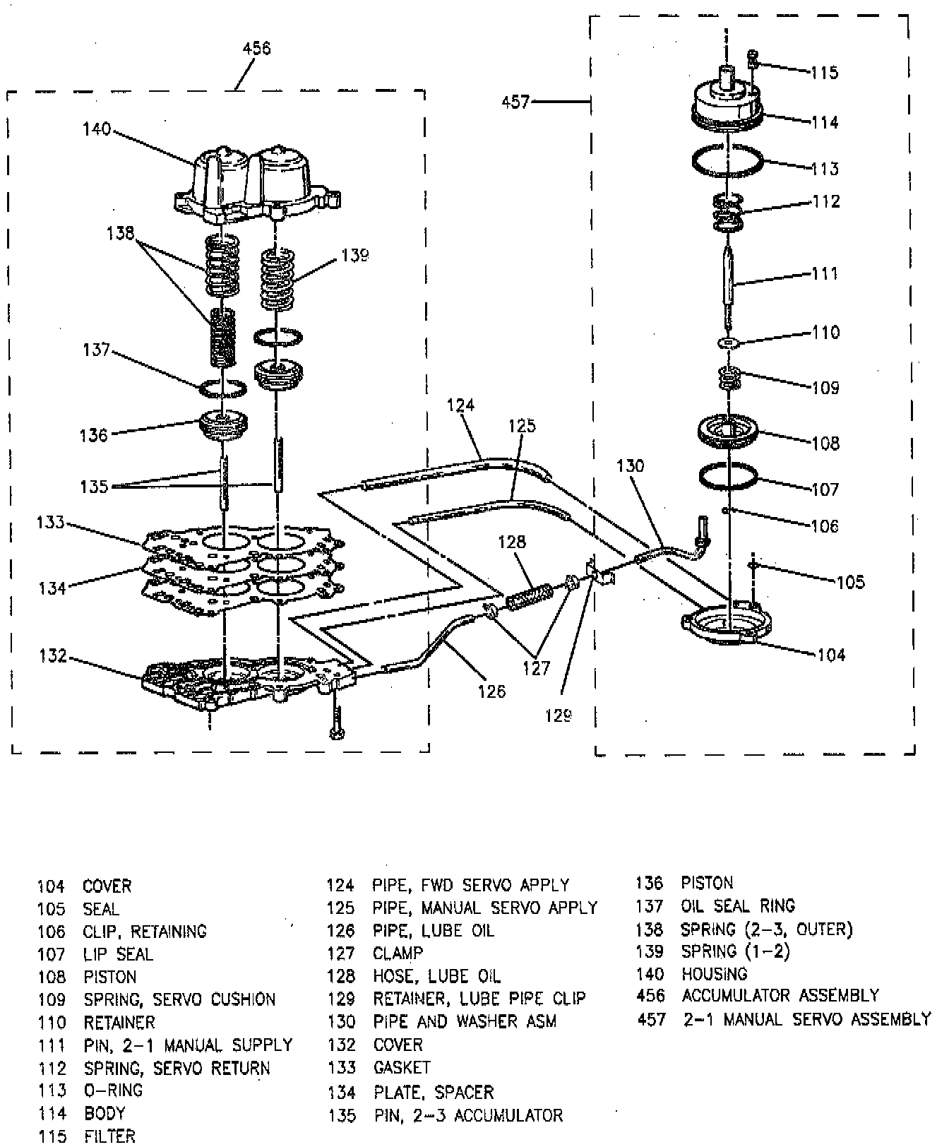7. Accumulator assembly, 2-1 manual servo piston assembly and filter, and seal.
