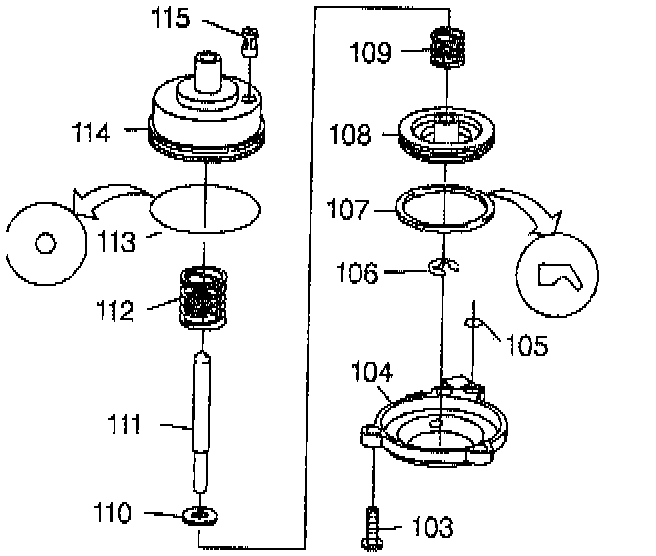 6. Remove the servo piston (108), the cushion spring (109), and the spring retainer (110) from the servo piston pin (111).