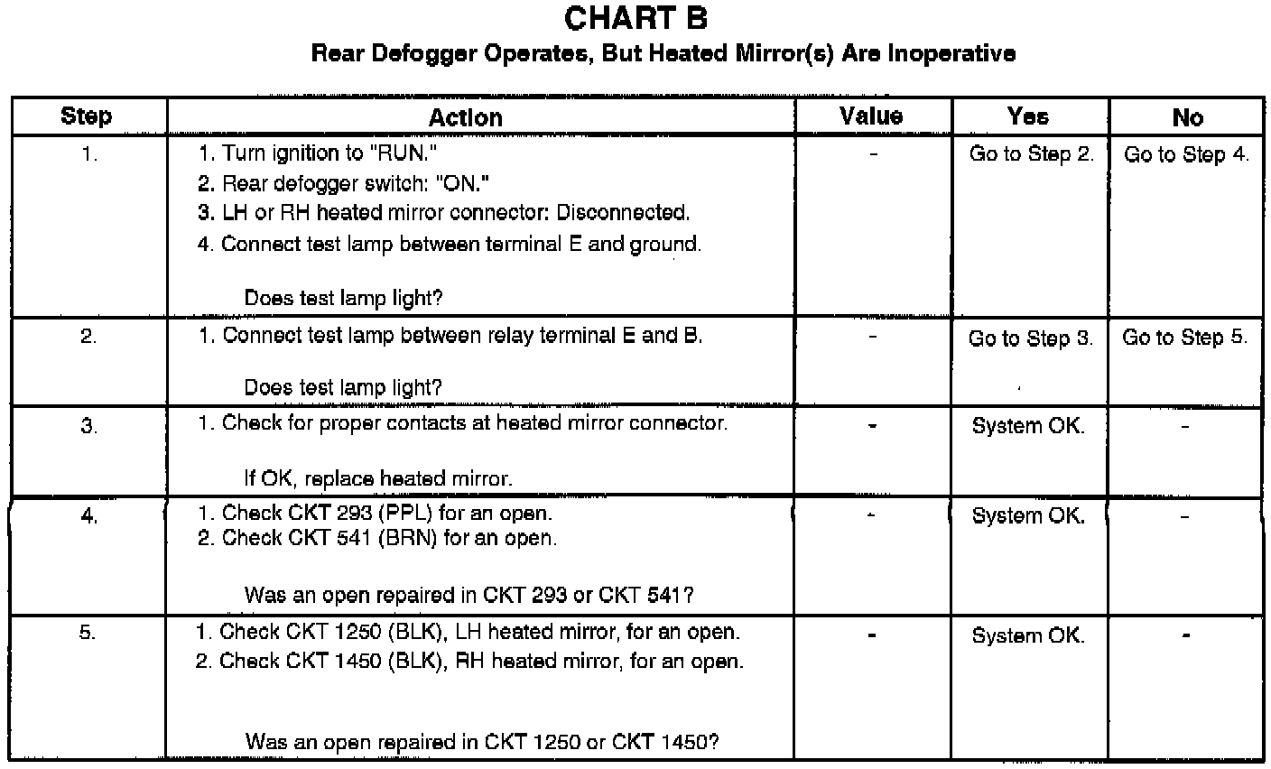 Chart B Rear Defogger Operates Properly, Heated Mirror(s) Inop
