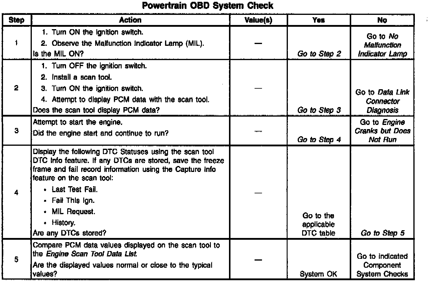 - Powertrain/On-Board Diagnostic System Check