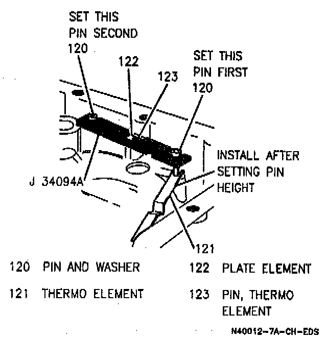 1. Set middle thermo pin height with J 3409-A.