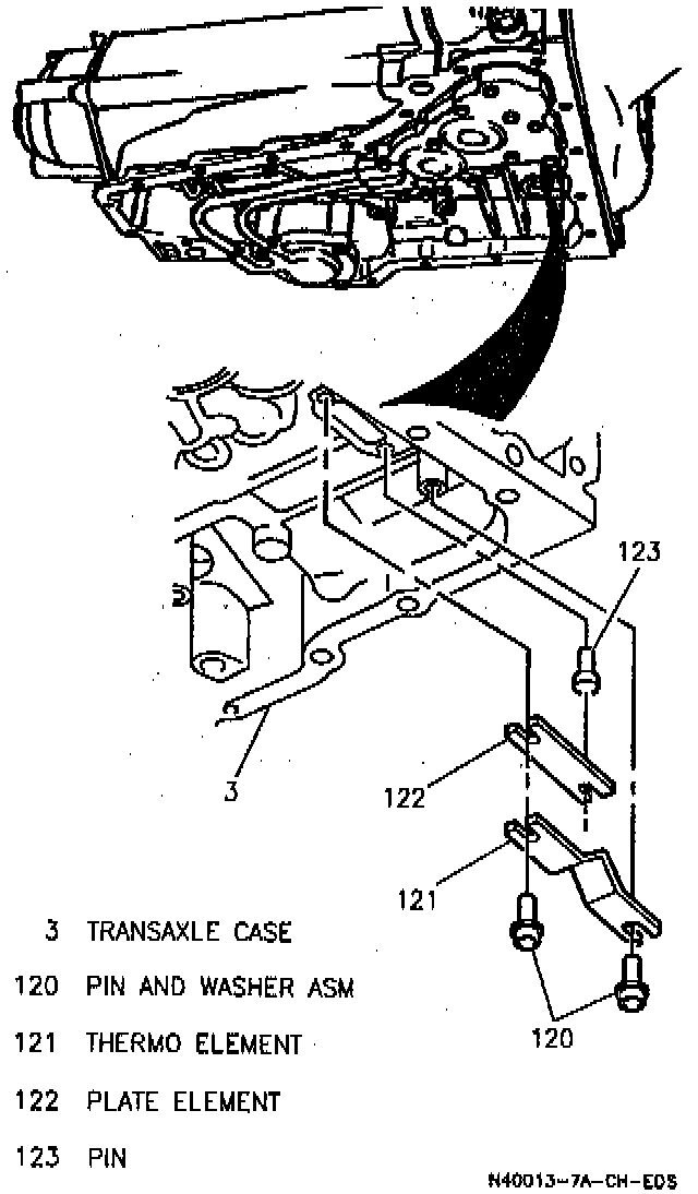 4. Thermo element between the two pins without bending the element too much. "V," in Thermo Element must contact the element plate.