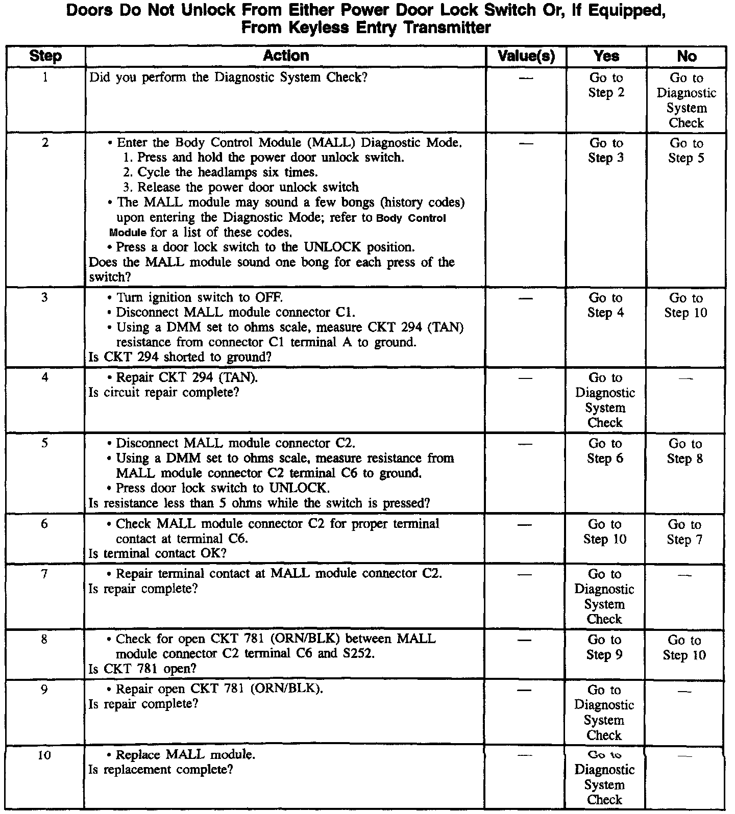 Doors Do Not Unlock From Either Power Door Lock Switch