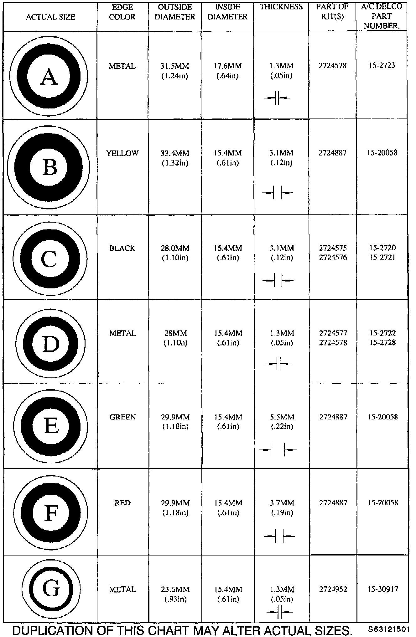 A/C Compressor Seal Washer - Reference Chart