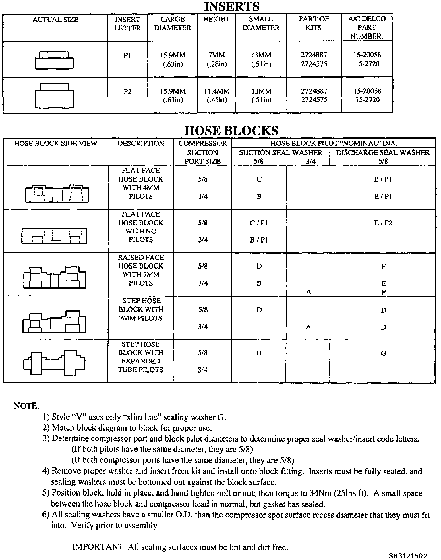 Reference Chart for A/C Compressor Seal Washers