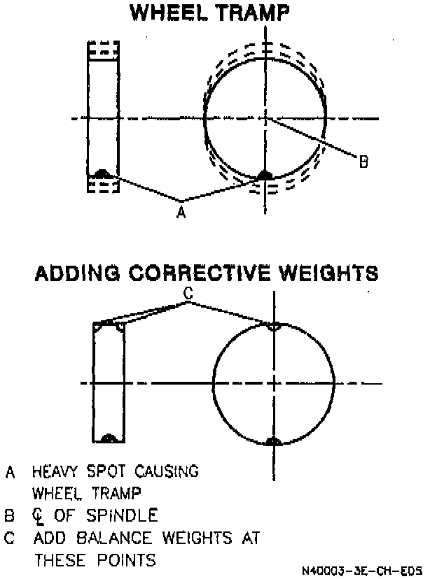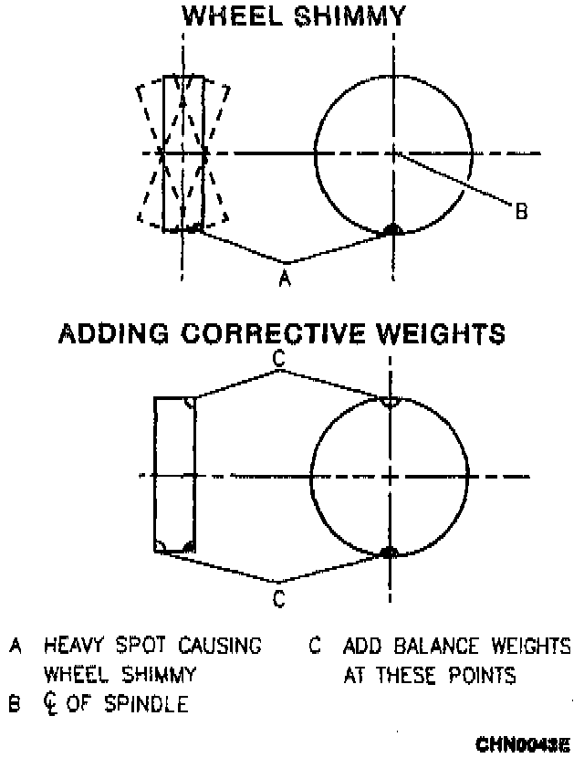 There are two types of balancing, static and dynamic. Static balance is the equal distribution of weight around the wheel. Wheels which are statically unbalanced cause a bouncing action called wheel tramp. This may eventually cause uneven tire wear.