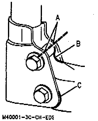 2. Scribe the strut flange on the inboard side along the curve of the knuckle (B).