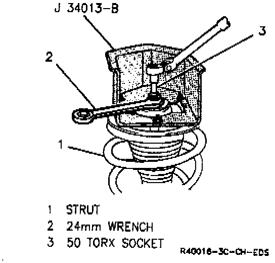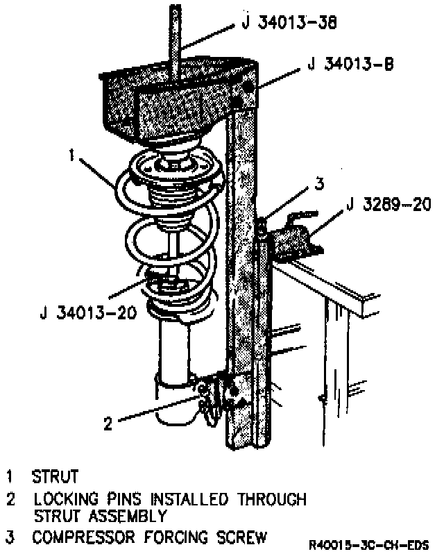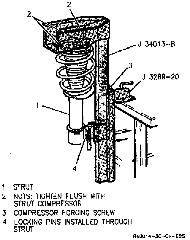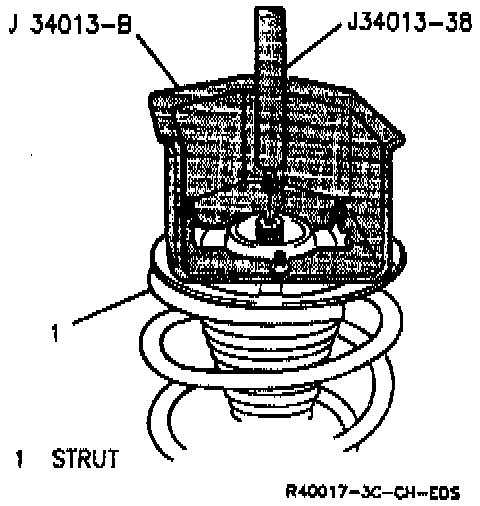 1. Install strut in strut compressor J 34013-B.