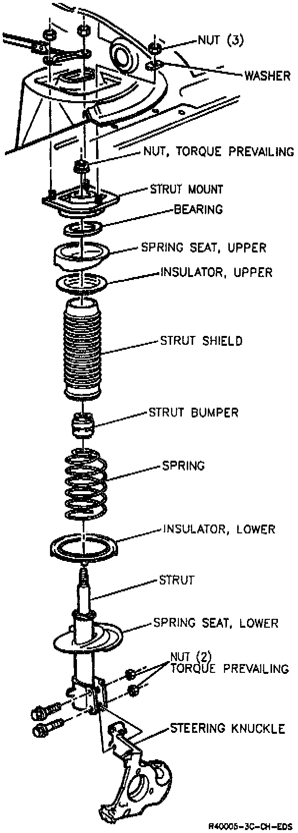 5. Loosen compressor screw while guiding strut shaft out of assembly. Continue loosening compressor screw until strut and spring can be removed.