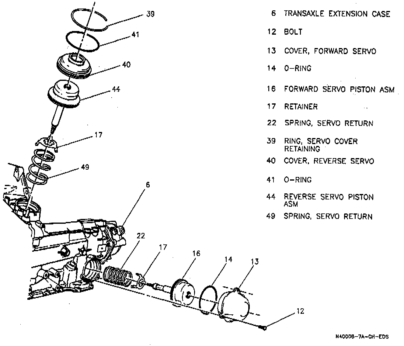 2. Servo cover, servo piston assembly, sealing ring, and servo spring.