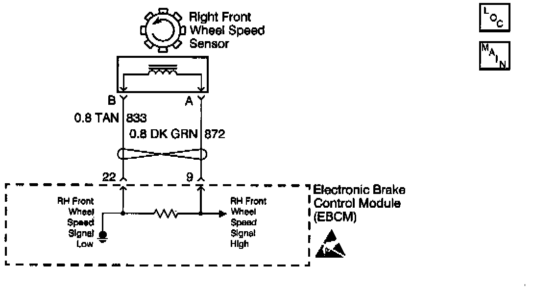 ^ The right front wheel speed sensor input signal equals zero.