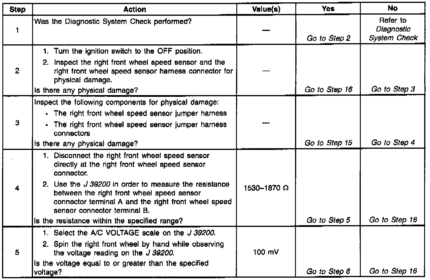 Resistance of the wheel speed sensor will increase with an increase in sensor temperature.