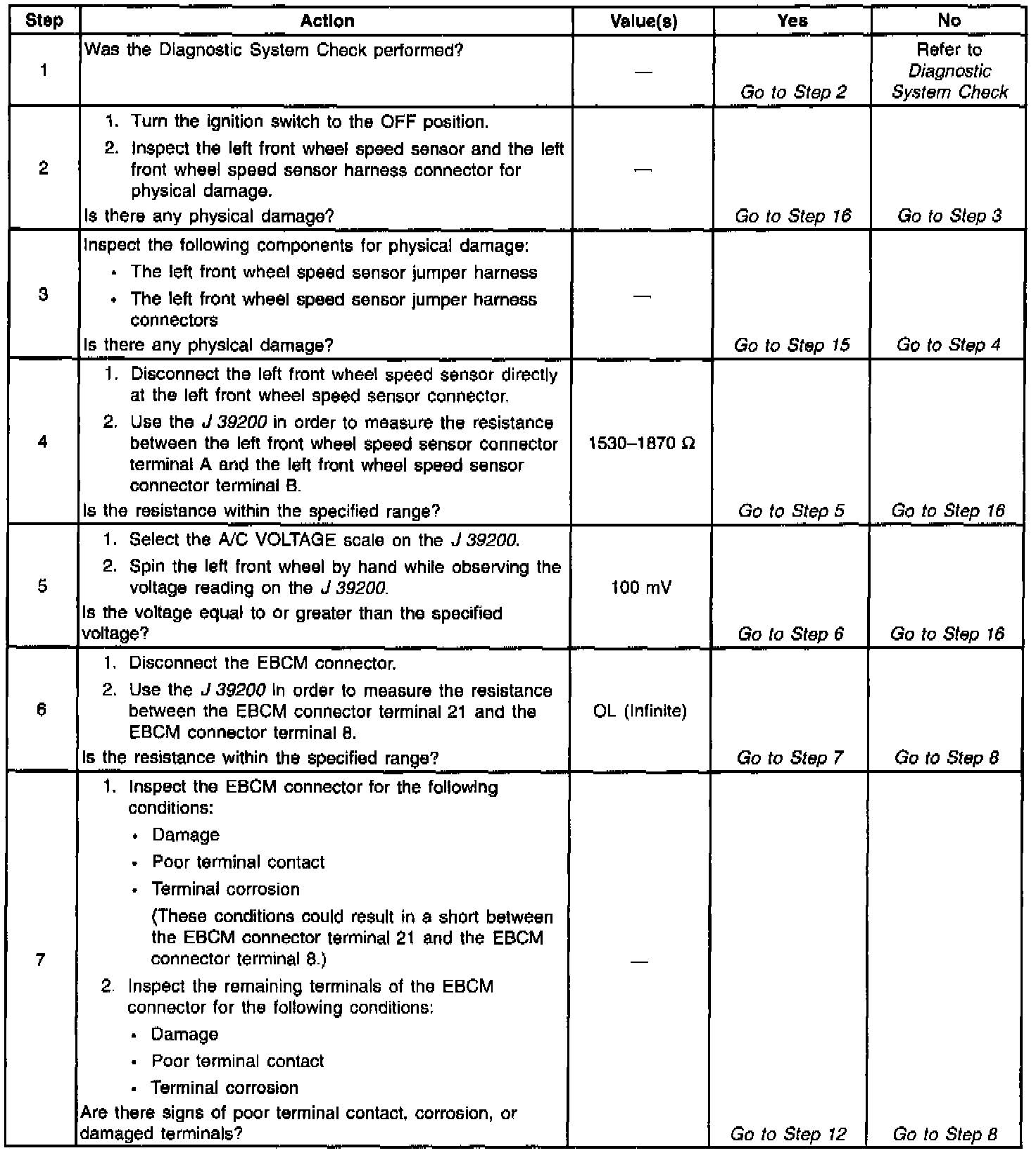 Important: Difficulty may occur when trying to locate intermittent malfunctions in the wheel speed sensor circuit.