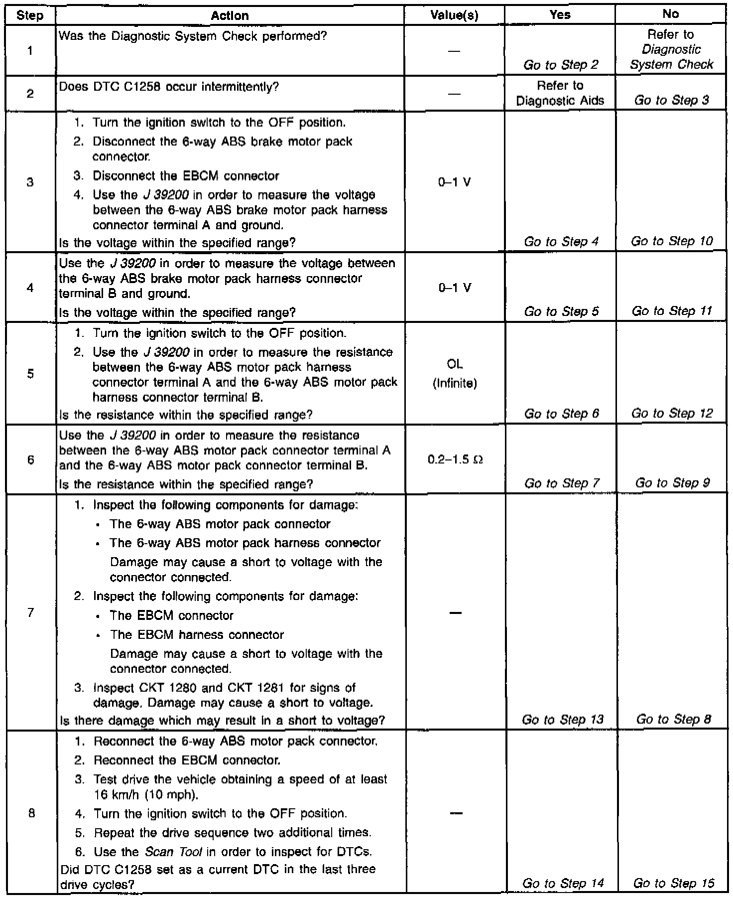 DTC C1258 LF ABS Motor Circuit Short To Voltage 2 Of 2: