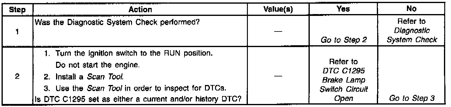 DTC C1291 Open Brake Lamp Sw Contacts During Decel 2 Of 3: