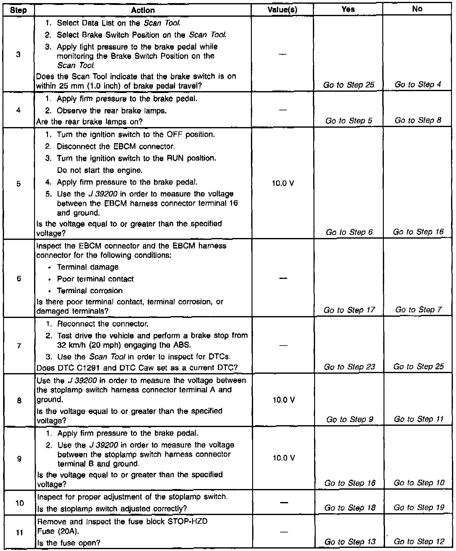 DTC C1291 Open Brake Lamp Sw Contacts During Decel 3 Of 3: