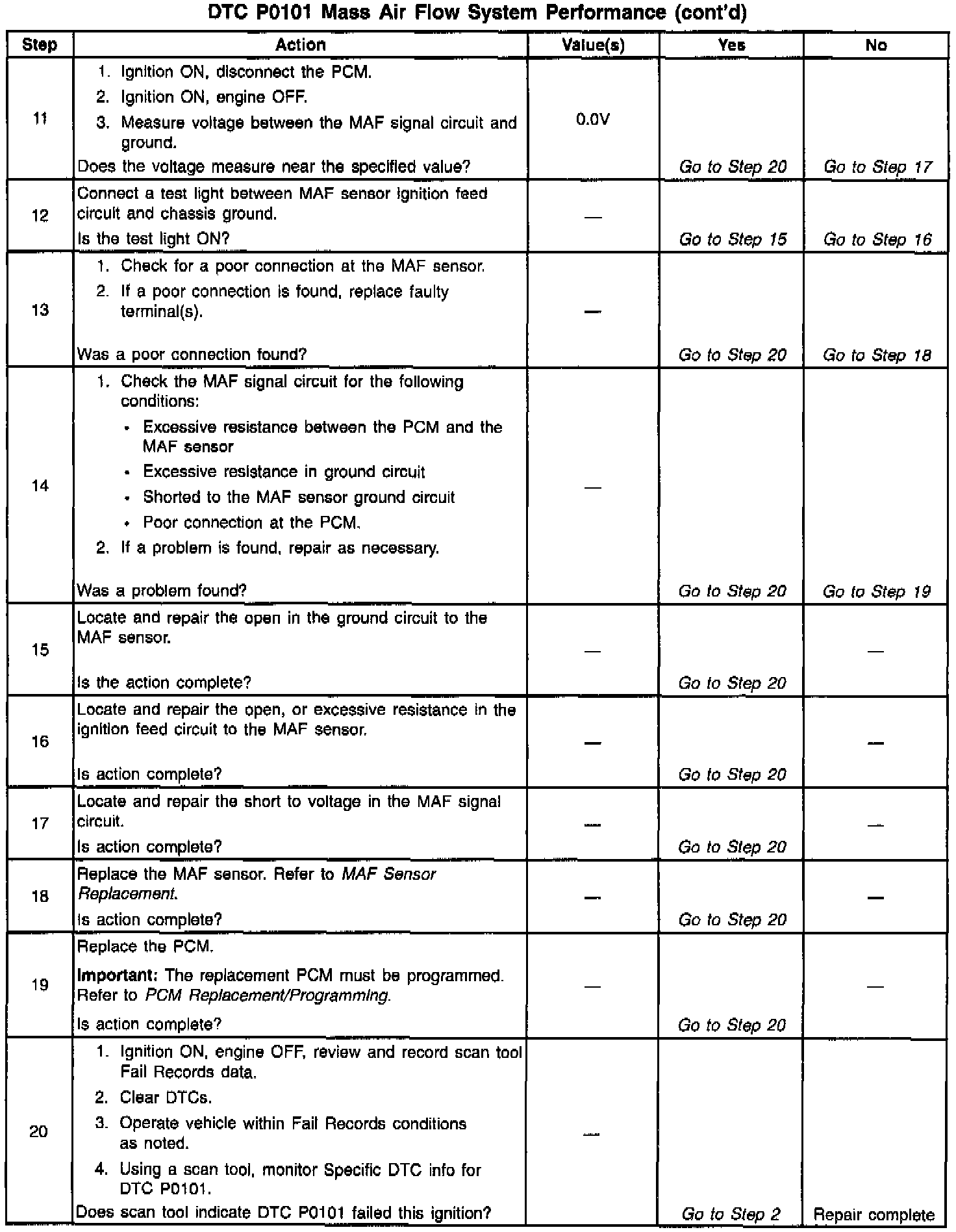 3. Only, if sent here from the Engine Cranks But Will Not Run, continue to follow diagnostic table even if DTC P0101 has NOT failed this ignition.