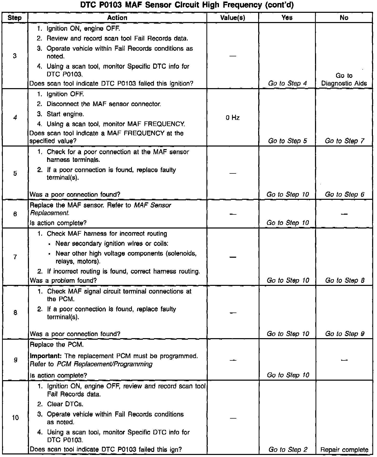If DTC P0103 cannot be duplicated, the information included in the Fail Records data can be useful in determining vehicle mileage since the DTC was last set.