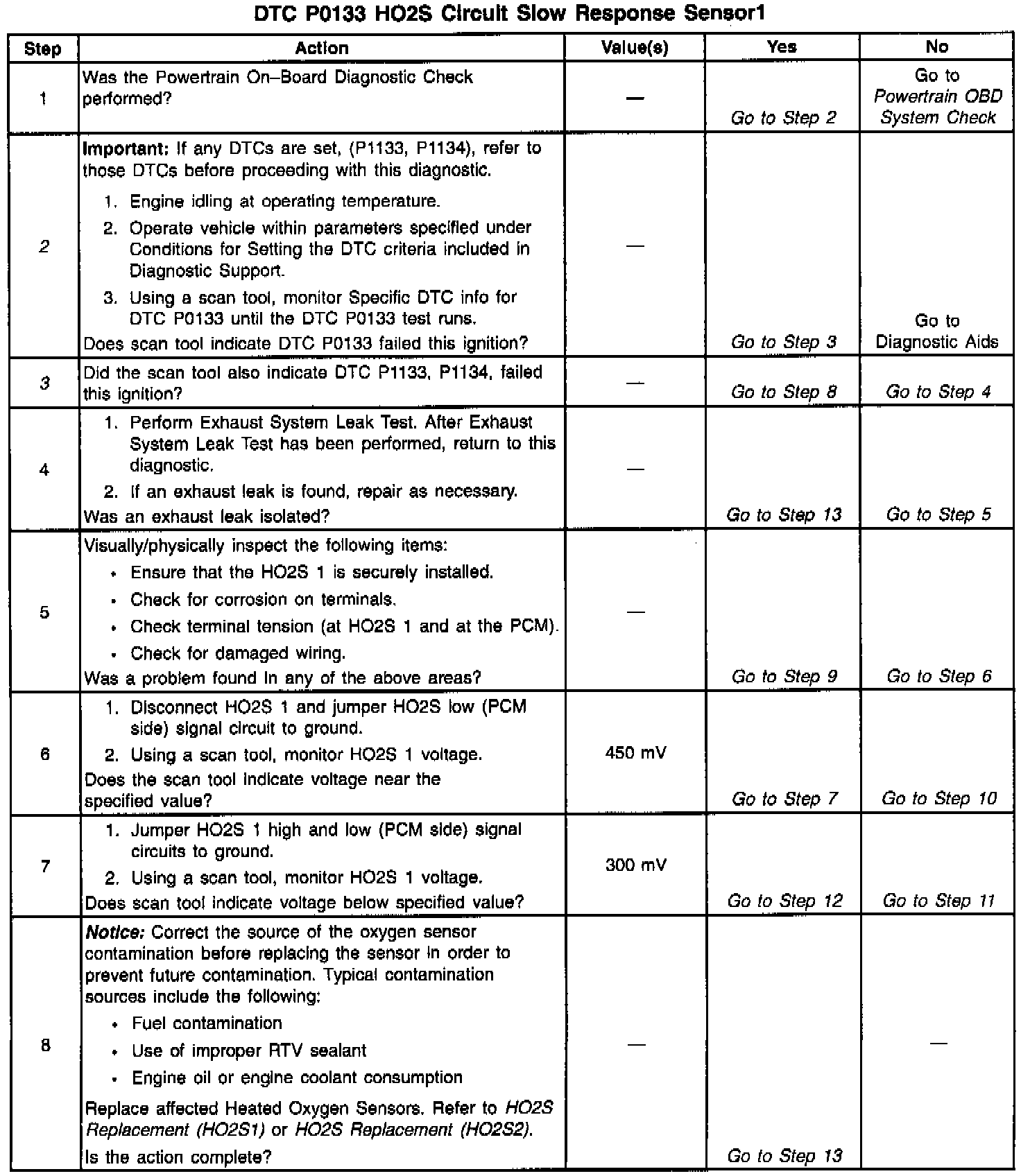 A lean to rich transition is indicated when the HO2S voltage changes from less than 300 mV to greater than 600 mV. A rich to lean transition is indicated when the HO2S voltage changes from more than 600 mV to less than 300 mV. An HO2S that responds too slowly is likely to be faulty and should be replaced.