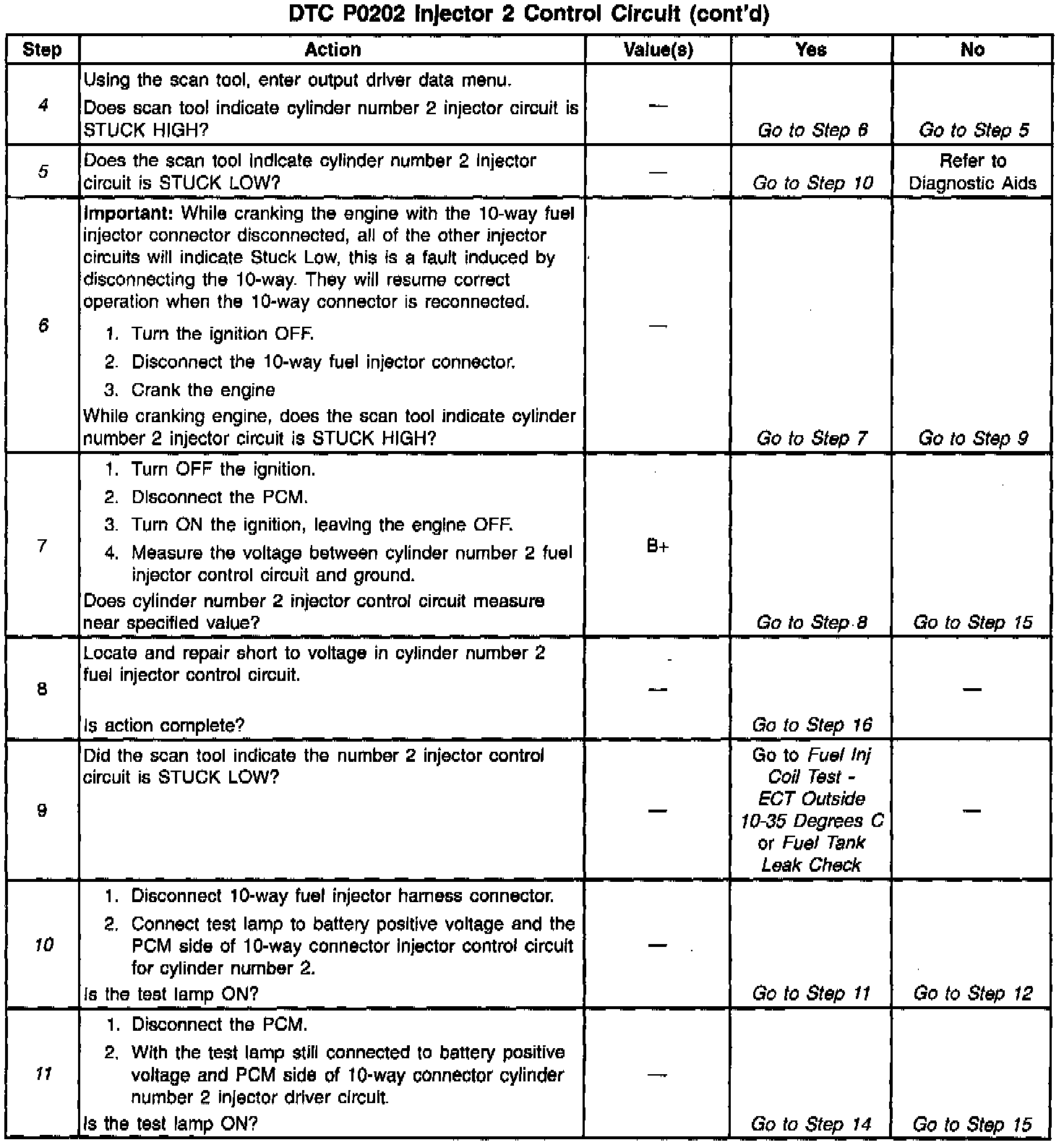 5. If the scan tool indicates STUCK LOW there is an open or a short to ground on the fuel injector driver circuit.