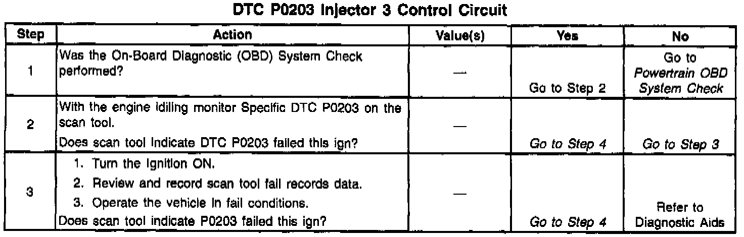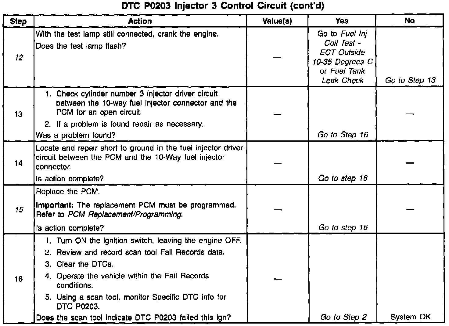 The PCM controls the fuel injector control circuit using a Multi Function Driver (MFD). The MFD has the ability to detect an electrical malfunction. If an electrical malfunction is detected, the MFD signals the PCM to set DTC P0203.