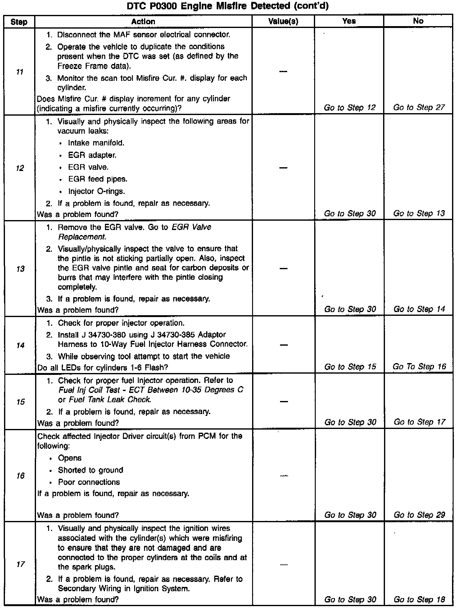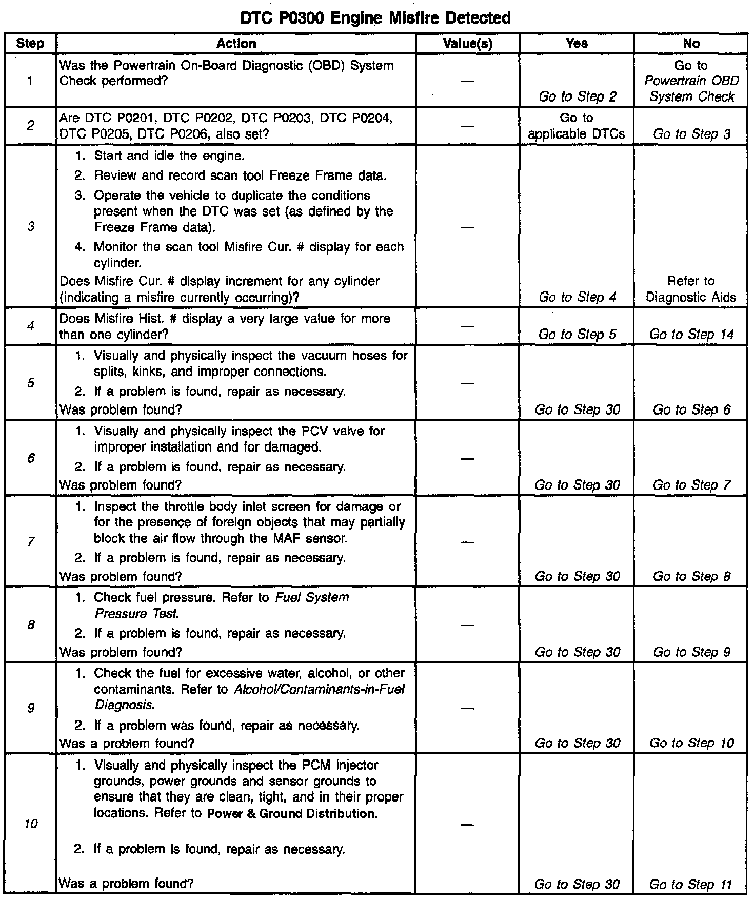 5. In steps 5 through 13, check for conditions that can cause a random cylinder misfire.
