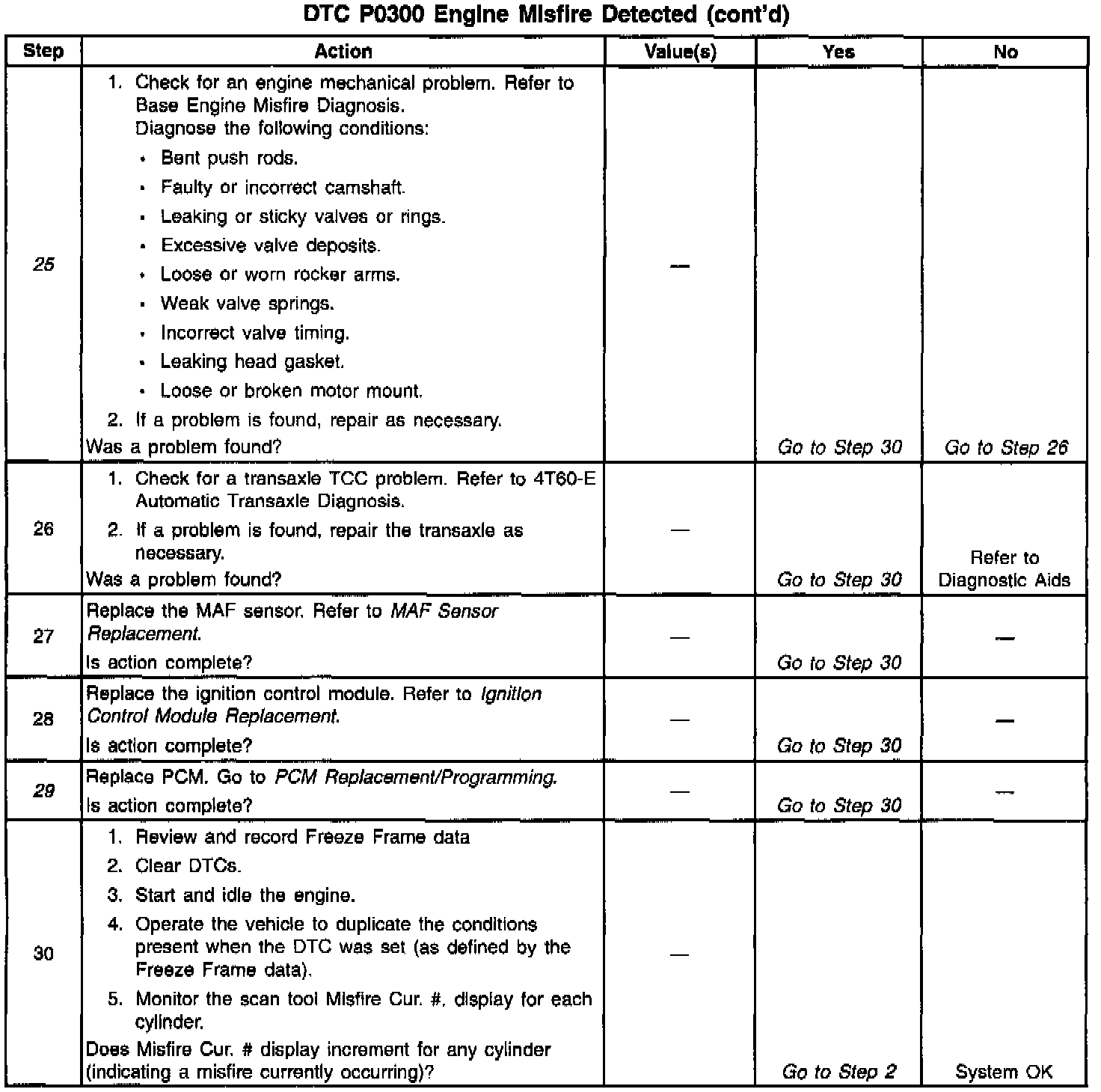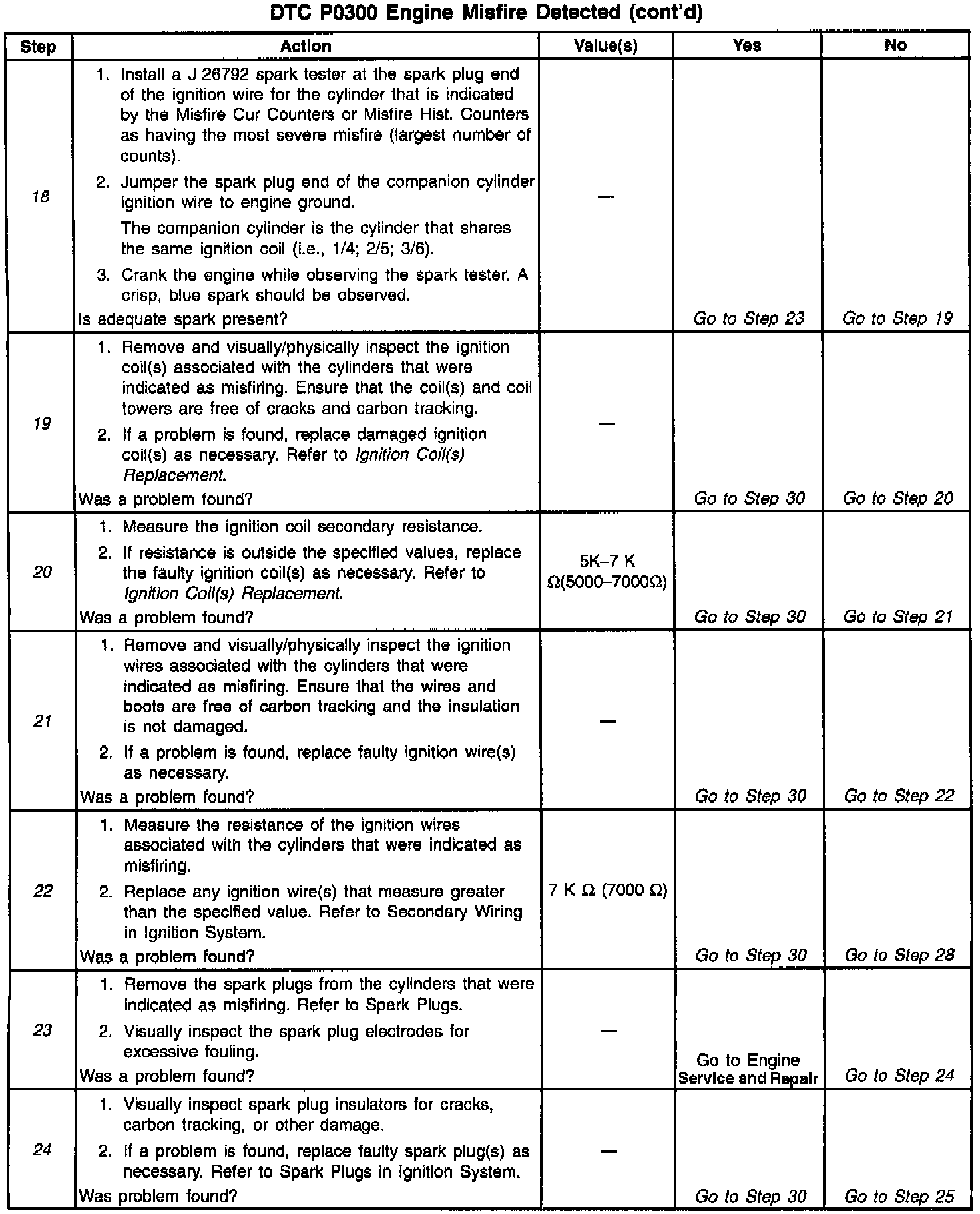 17. In steps 17 through 25, check for conditions that can cause a non-random or single cylinder misfire.