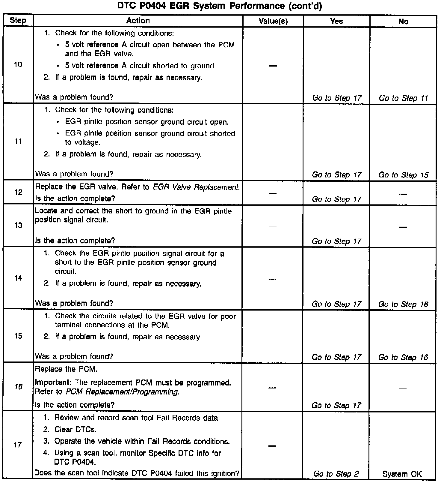 3. If DTC P0404 will only set under certain conditions, the malfunction may be intermittent, refer to Diagnostic Aids. If an intermittent wiring problem is not present, check for a poor connection at the PCM or the EGR valve. If the connections are OK and DTC P0404 continues to set, replace the EGR valve.