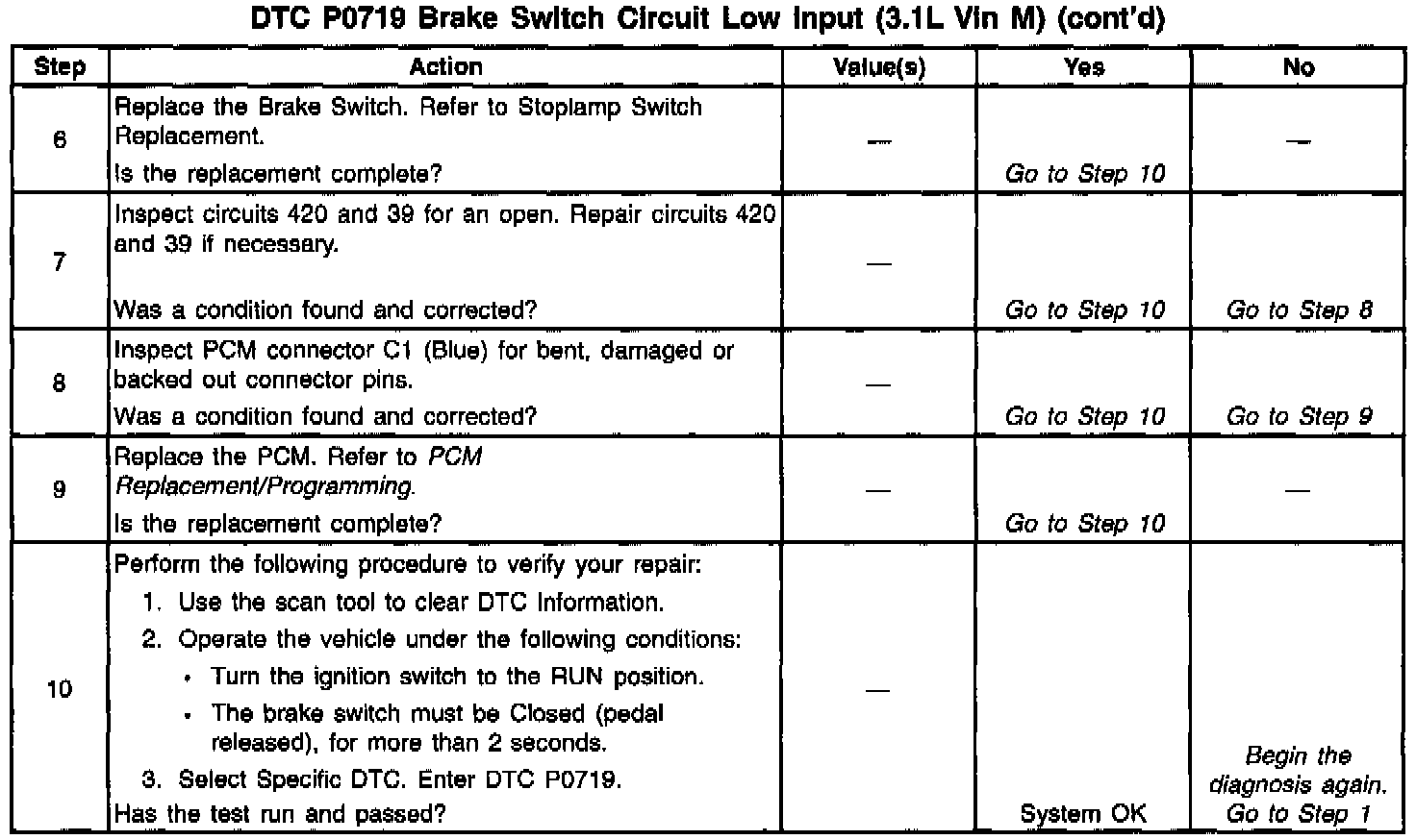 ^ Inspect the wiring at the PCM, the brake switch connector and all other circuit connecting points for the following conditions:
