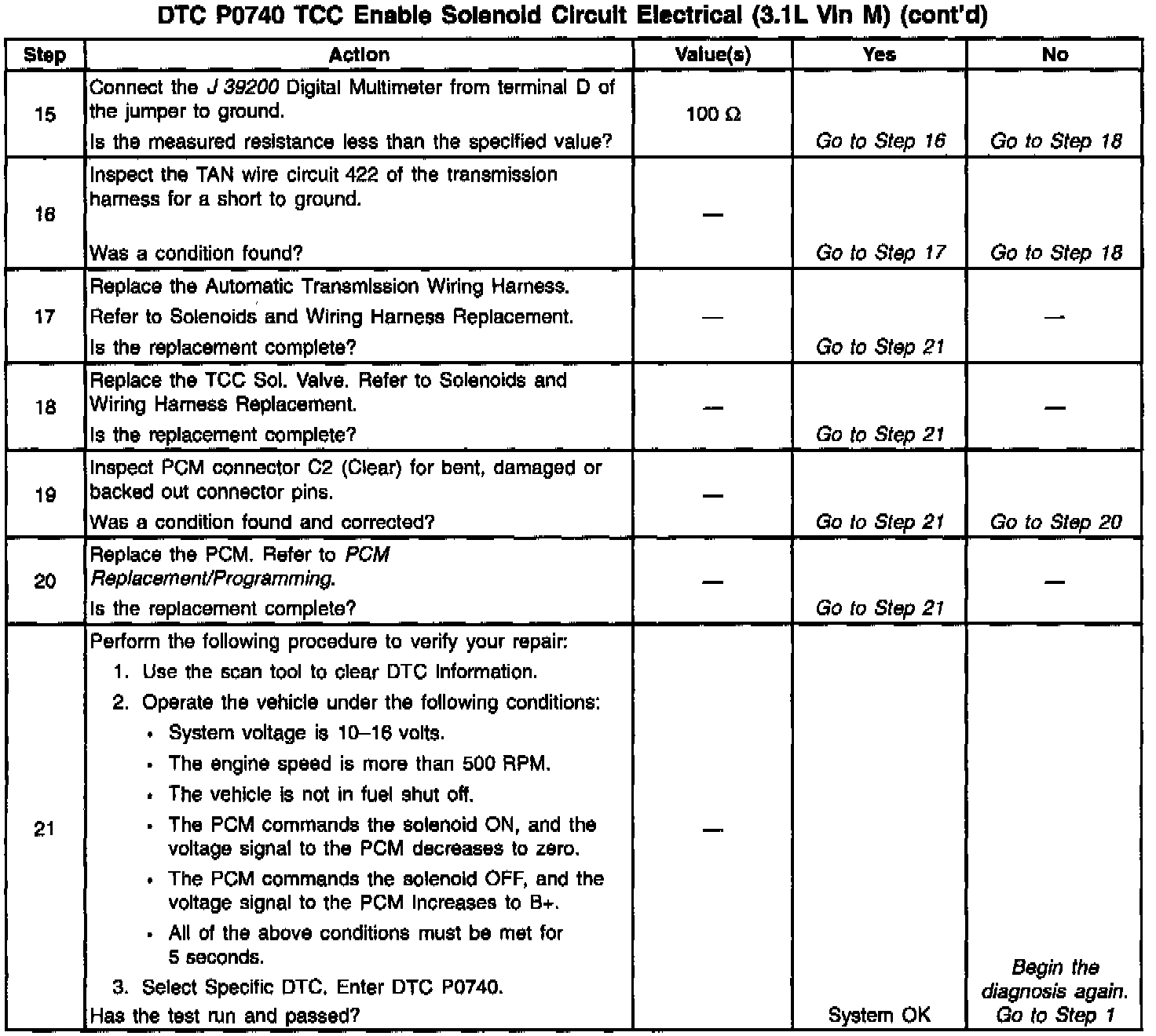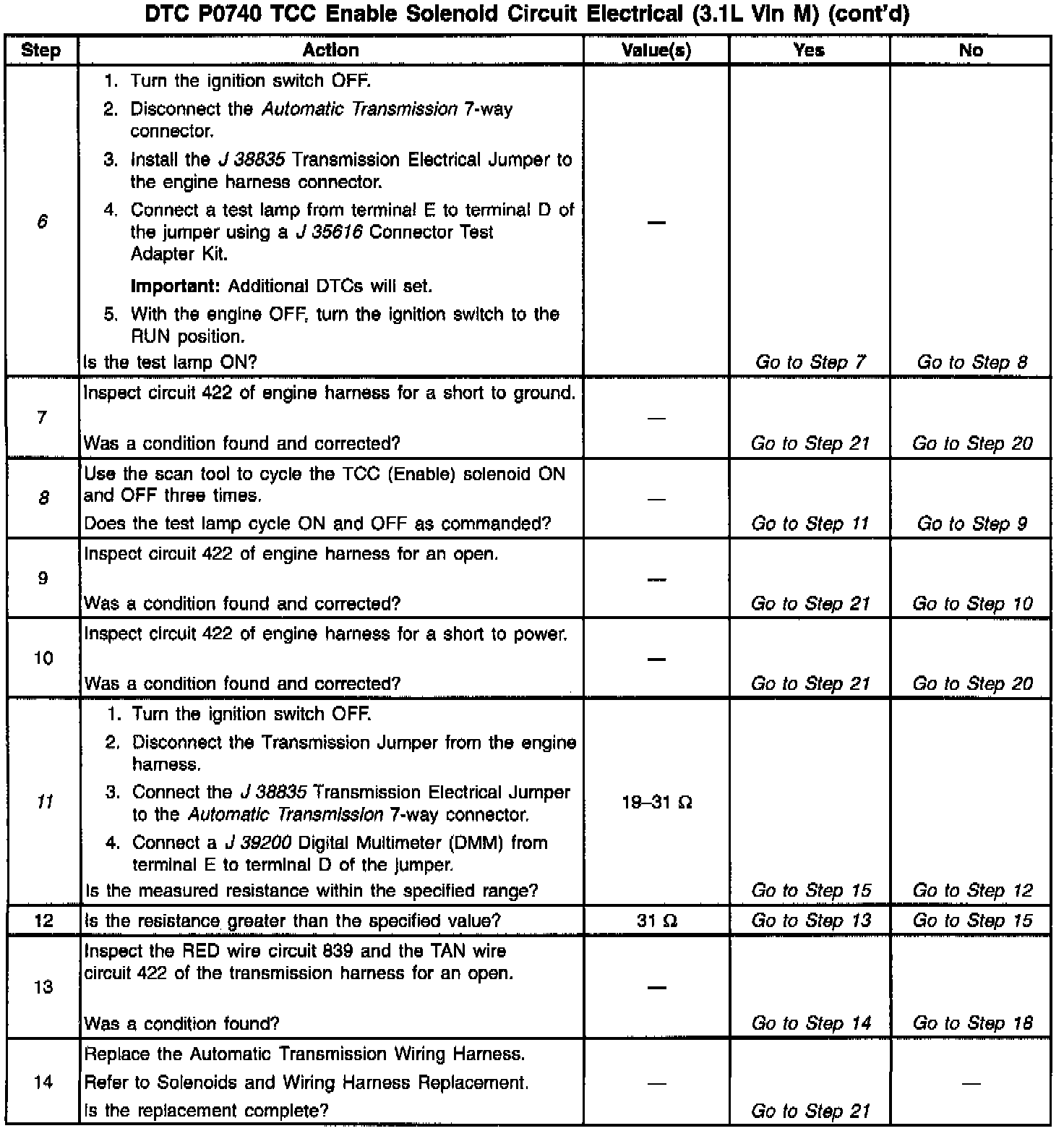 11. This step verifies that the solenoid is not open or shorted across its windings, and the transmission harness is not open or shorted.