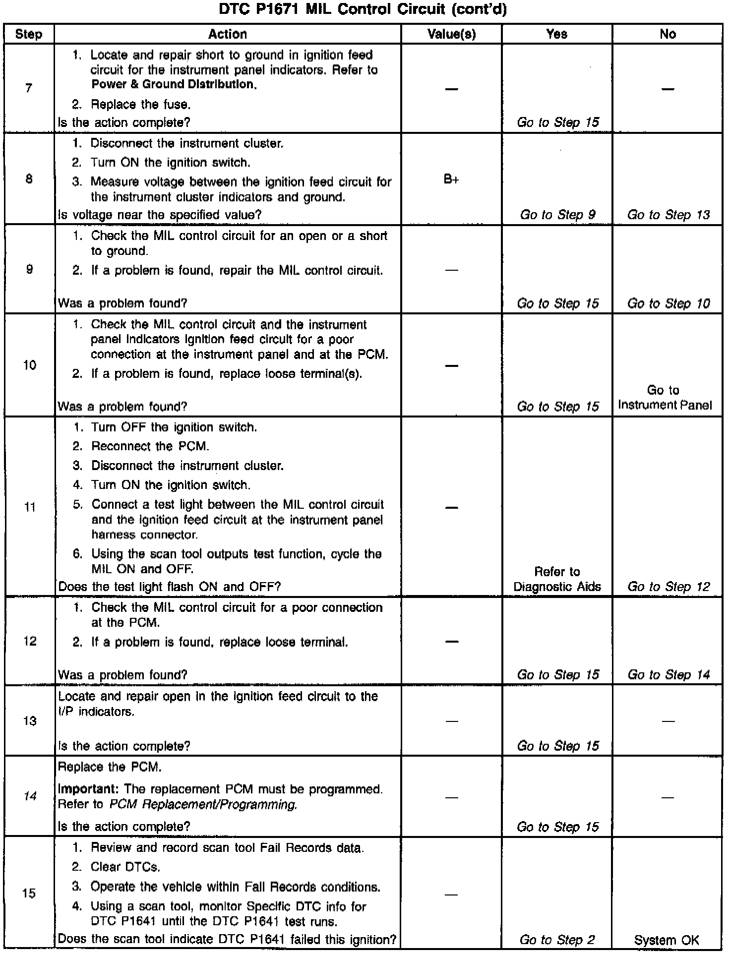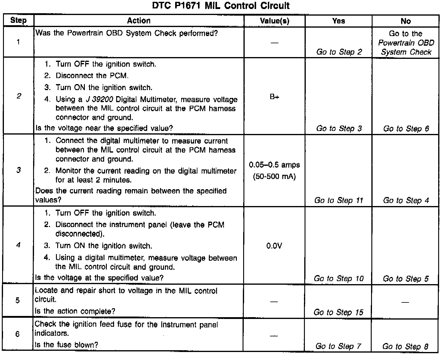 Output Driver Modules (ODMs) are used by the PCM to turn on many of the current-driven devices that are needed to control various engine and Transaxle functions. Each ODM is capable of controlling up to 7 separate outputs by applying ground to the device which the PCM is commanding on. DTC P1671 set indicates an improper voltage level on the output circuit that controls the Malfunction Indicator Lamp (MIL).