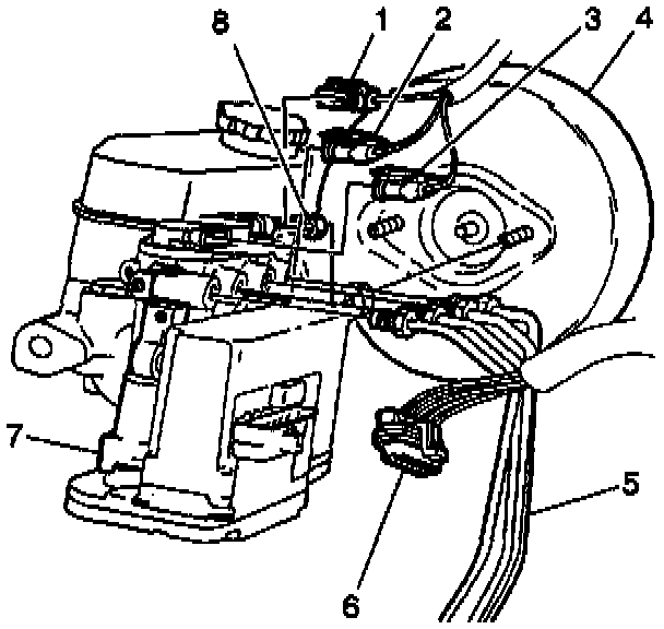 3. Connect the ABS brake motor pack 6-way electrical connector (6).