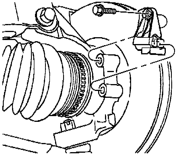 4. Remove the front wheel speed sensor. If the sensor will not slide out of the knuckle, remove the brake rotor and use a blunt punch or equivalent tool to push the sensor from the back side of the knuckle.