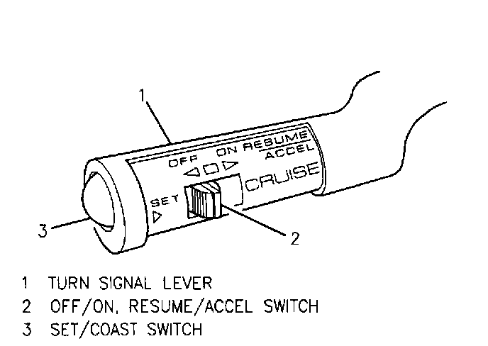 The cruise control engagement switch is part of the turn signal lever assembly and is not serviceable by itself. The turn signal lever and