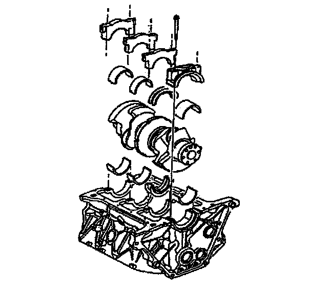 NOTICE: In order to prevent the possibility of cylinder block or crankshaft bearing cap damage, the crankshaft bearing caps are tapped into the cylinder block cavity using a brass, lead, or a leather mallet before the attaching bolts are installed. Do not use attaching bolts to pull the crankshaft bearing caps into the seats. Failure to use this process may damage a cylinder block or a bearing cap.