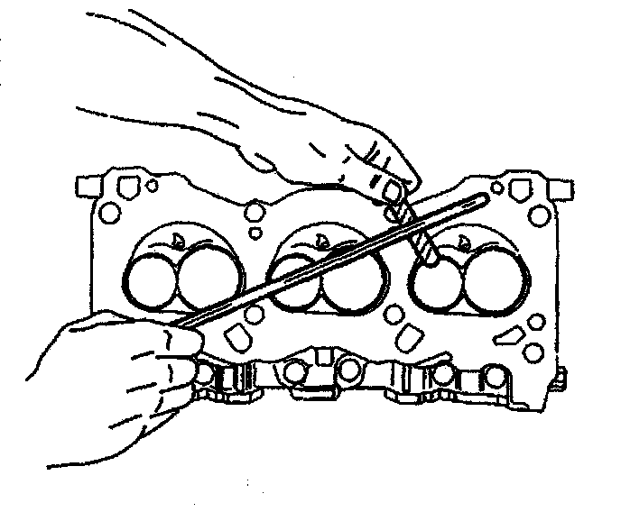 5. Inspect the cylinder head mating surfaces for flatness. Recondition the cylinder head mating surface, if necessary, by milling. Replace the cylinder head if you must remove more than 0.25 mm (0.010 inch).