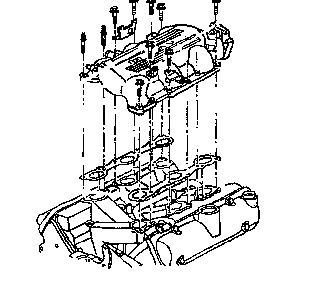 14. Remove the upper intake manifold studs and bolts.