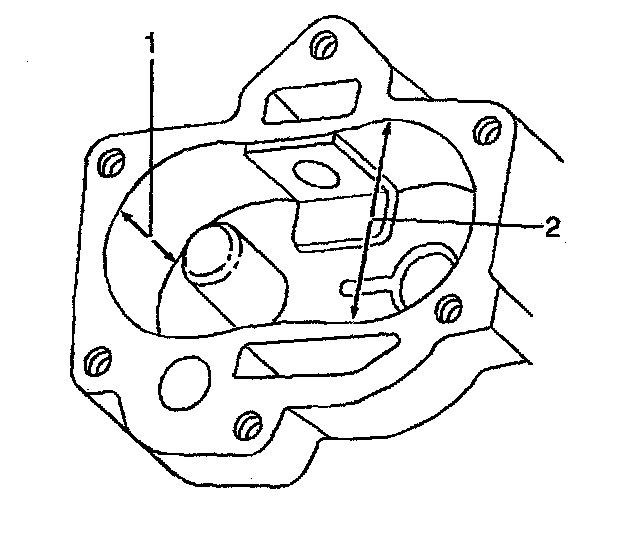 12. Measure the oil pump housing gear pocket (1,2).