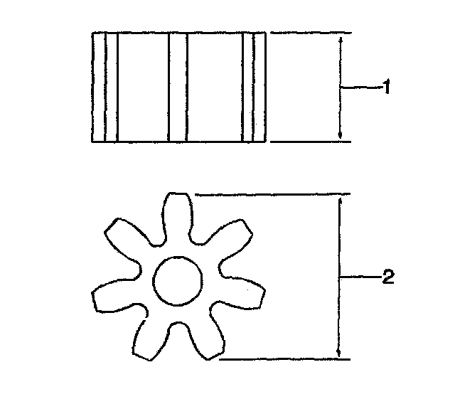13. Measure the oil pump gears (1,2).