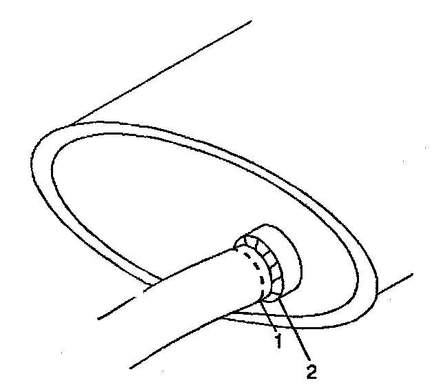 2. Cut the intermediate pipe (1) at the muffler (2) near the weld.