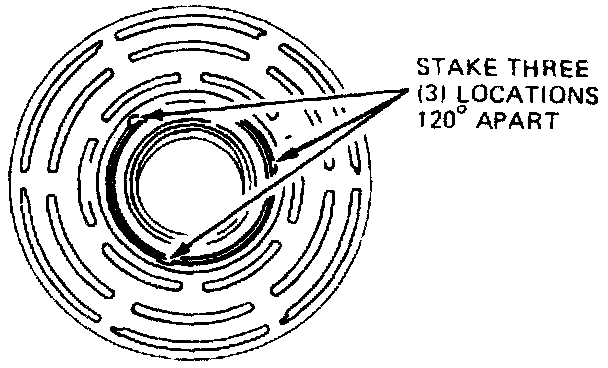 The stake metal should not contact the outer face of the bearing to prevent the possibility of distorting the outer race. Stake three (3) places 120° apart as shown in the illustration.