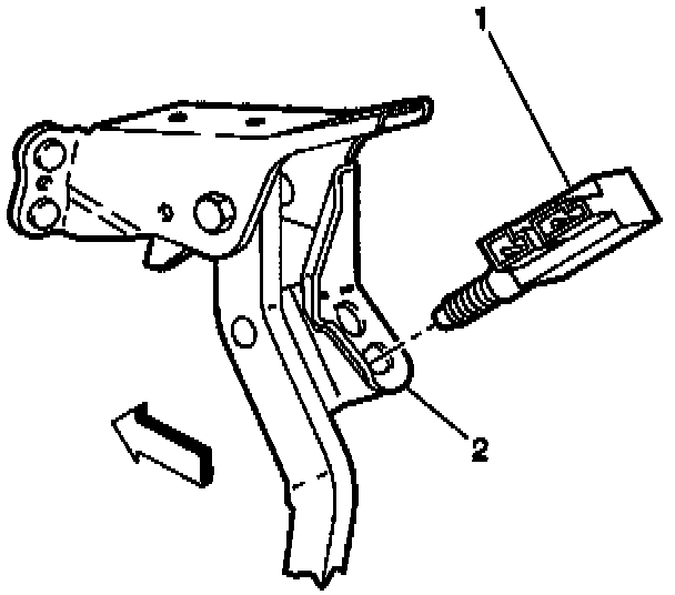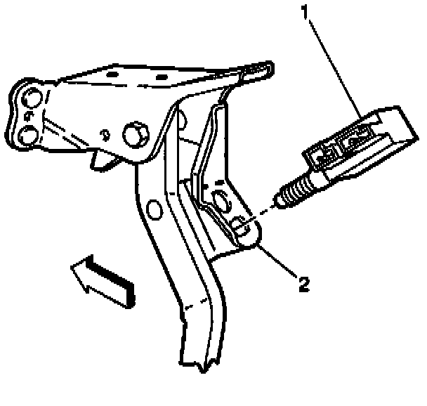 3. Disconnect the brake switch retainer (2), grasping and turning 90 degrees counter clockwise and pulling towards the rear of the vehicle.