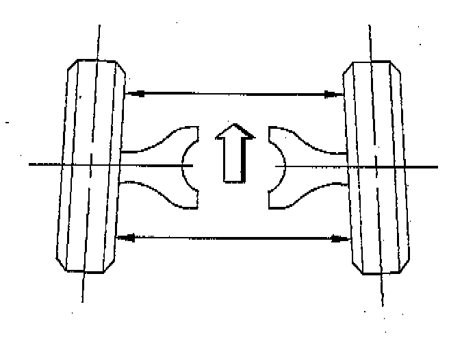 The toe is a measurement of how much the front of the wheels are turned in or out from a straight-ahead position. When the wheels are turned in, the toe is positive (+). When the wheels are turned out, the toe is negative (-). The actual amount of toe is normally only a fraction of a degree. The purpose of the toe is to ensure that the wheels roll parallel. The toe also serves to offset the small deflections of the wheel support system that occurs when the vehicle is rolling forward. In other words, even when the wheels are set to toe in or out slightly when the vehicle is standing still, the wheels tend to roll parallel on the road when the vehicle is moving. The toe affects tire wear.