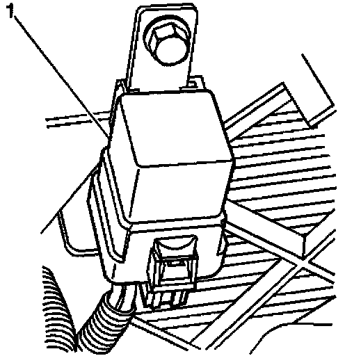 13. Using the 10 mm (hex head bolt provided in the harness kit, attach the relay (1) to the radiator support using the previously drilled hole and J-nut.