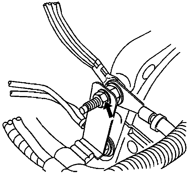 ^ If the nut and/or stud appear to be corroded to the point where the stud may break off if removal of the nut is attempted, proceed to Step 21 of this procedure. Steps 21-27 will require the use of one ADDITIONAL butt connector, P/N 12089191. Obtain the additional butt connector before proceeding.